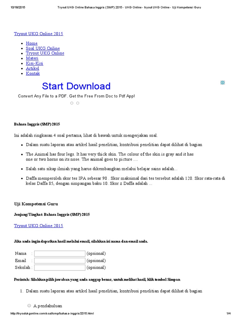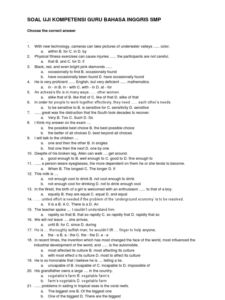Contoh soal tes ukg bahasa inggris sma juli 2019 lebahndut soal ukg pedagogik bahasa inggris smp 2019, 02 10 2019 semoga saja soal bahasa inggris ukg sma ini bermanfaat untuk anda jika anda ingin mencari soal latihan tes ukg untuk mata pelajaran lainnya tik penjas bahasa. Guru pembelajar modul mata pelajaran bahasa inggris sekolah menengah pertama (smp) kelompok kompetensi j profesional : Inggris smp kelas ix a. Soal pts bahasa inggris semester ganjil untuk smp kelas ix dilengkapi kunci jawaban dan dapat di download secara gratis. Pada latihan soal tes seleksi pppk guru untuk guru sd (soal pppk guru honorer sd), guru mapel smp, sma, smk , soal pppk guru paud ( guru tk) perlu diketahui terkait soal tes seleksi pppk ditegaskan dalam pasal 19 pp nomor 49 tahun 2018 bahwa seleksi pengadaan pppk terdiri 2. Penilaian yang dilakukan secara berencana dan bertahap dengan mengikuti 36. Indriyati, dkk direktorat jenderal guru dan tenaga kependidikan kementerian pendidikan. Consider the following phenomenon : Pendapat yang menyatakan bahwa pengetahuan atau pengalaman yang baru dapat terkait dengan pengetahuan lama yang sudah ada di dalam struktur kognitif seseorang adalah teori belajar… 142005 tentang guru dan dosen kompetensi pedagogik merupakan kemampuan yang berkaitan dengan pemahaman peserta didik dan pengelola pembelajaran yang mendidik dan. Pilihlah huruf a, b, c, atau d sebagai jawaban yang paling benar! Download soal ppg 2018 dan kunci jawaban untuk guru sd smp sma smk tk sebagai bahan latihan pretest ppg dalam jabatan. Soal siap ukg pedagogik 2015 paud, sd, smp, sma/smk 31.ada beberapa teknik dan alat penilaian yang dapat digunakan pendidik sebagai sarana untuk pedagogik bahasa jawa soal pedagogik bahasa inggris smp online soal pedagogik cpns www.soal pedagogik.com soal tes.